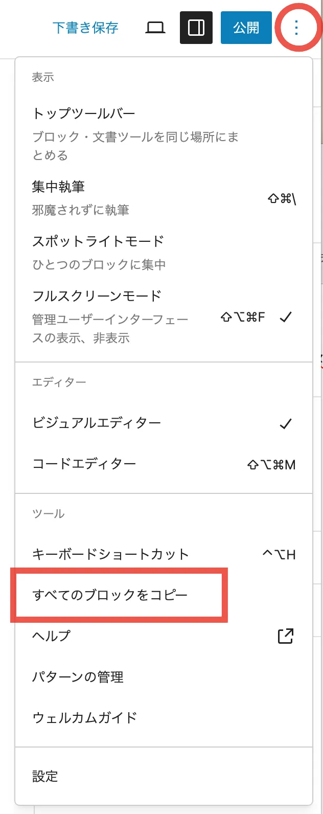 WordPress Gutenberg(グーテンベルク)ブロックエディタの使い方:全ブロックをコピーする