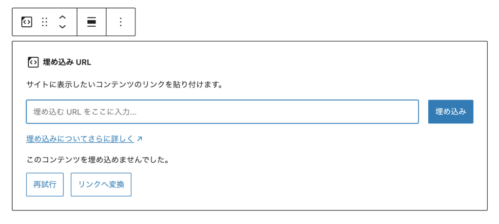 先ほどコピーしたURLを貼り付けて埋め込みボタンをクリックします。